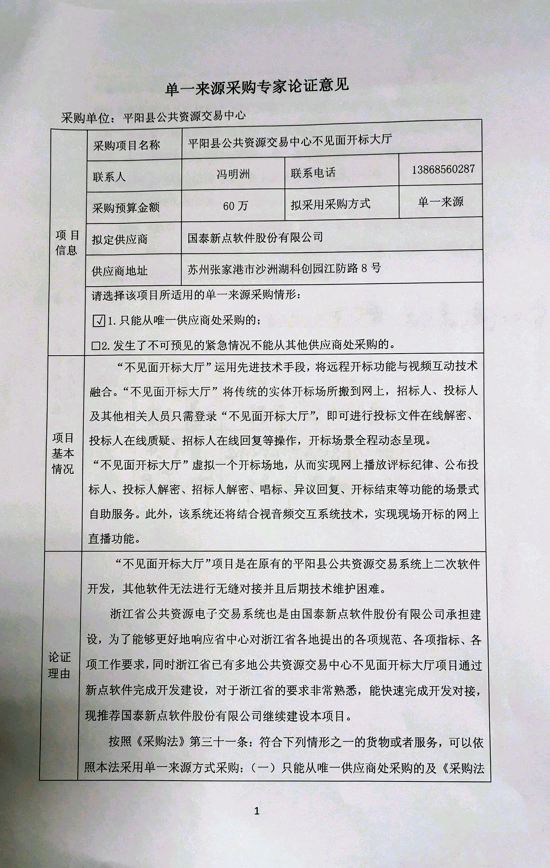 平阳县公共资源交易中心关于不见面开标大厅采购项目的单一来源采购公示